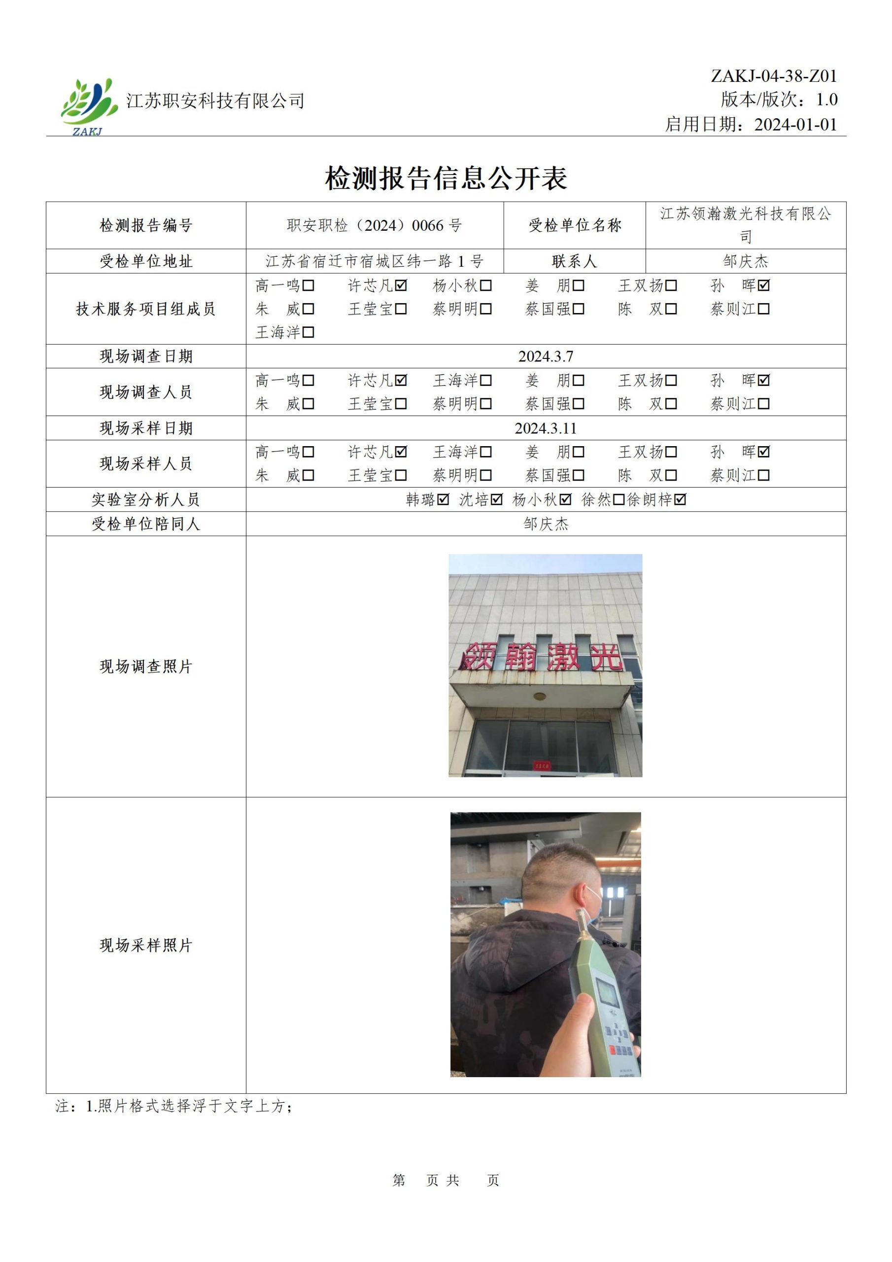 檢測報告公示