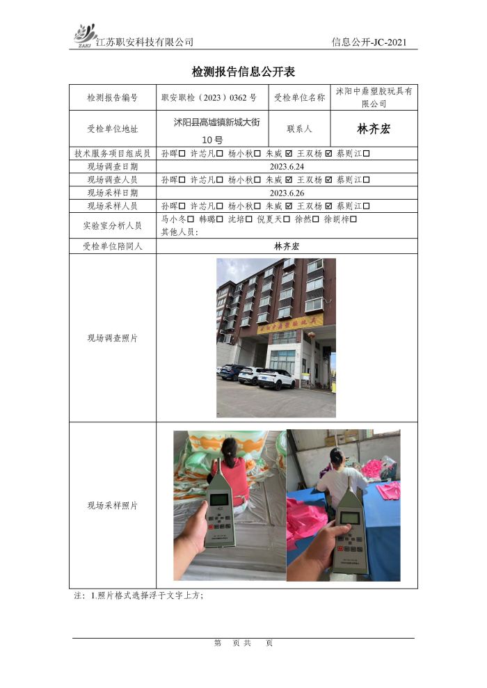 檢測報告公示