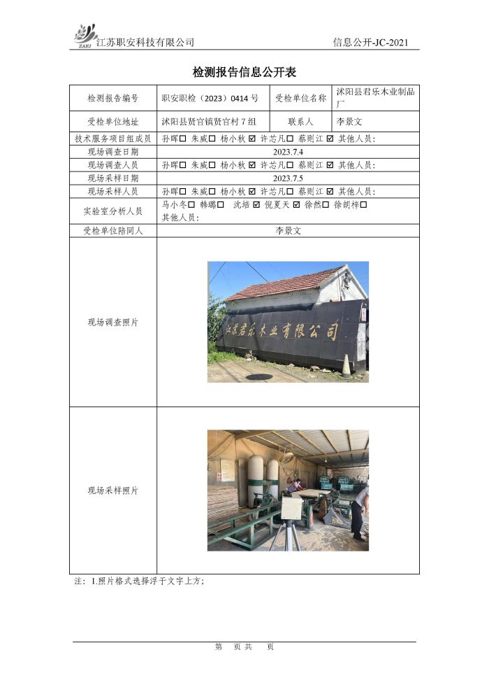 檢測報告公示