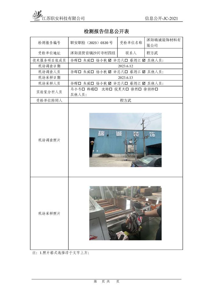 檢測報告公示