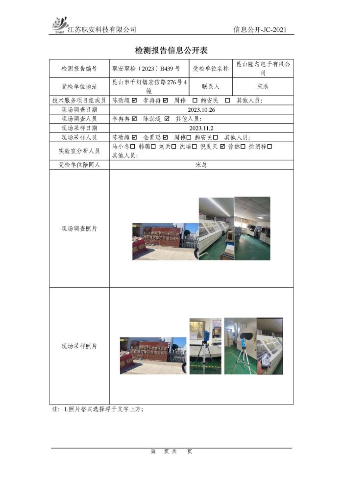 檢測報告公示