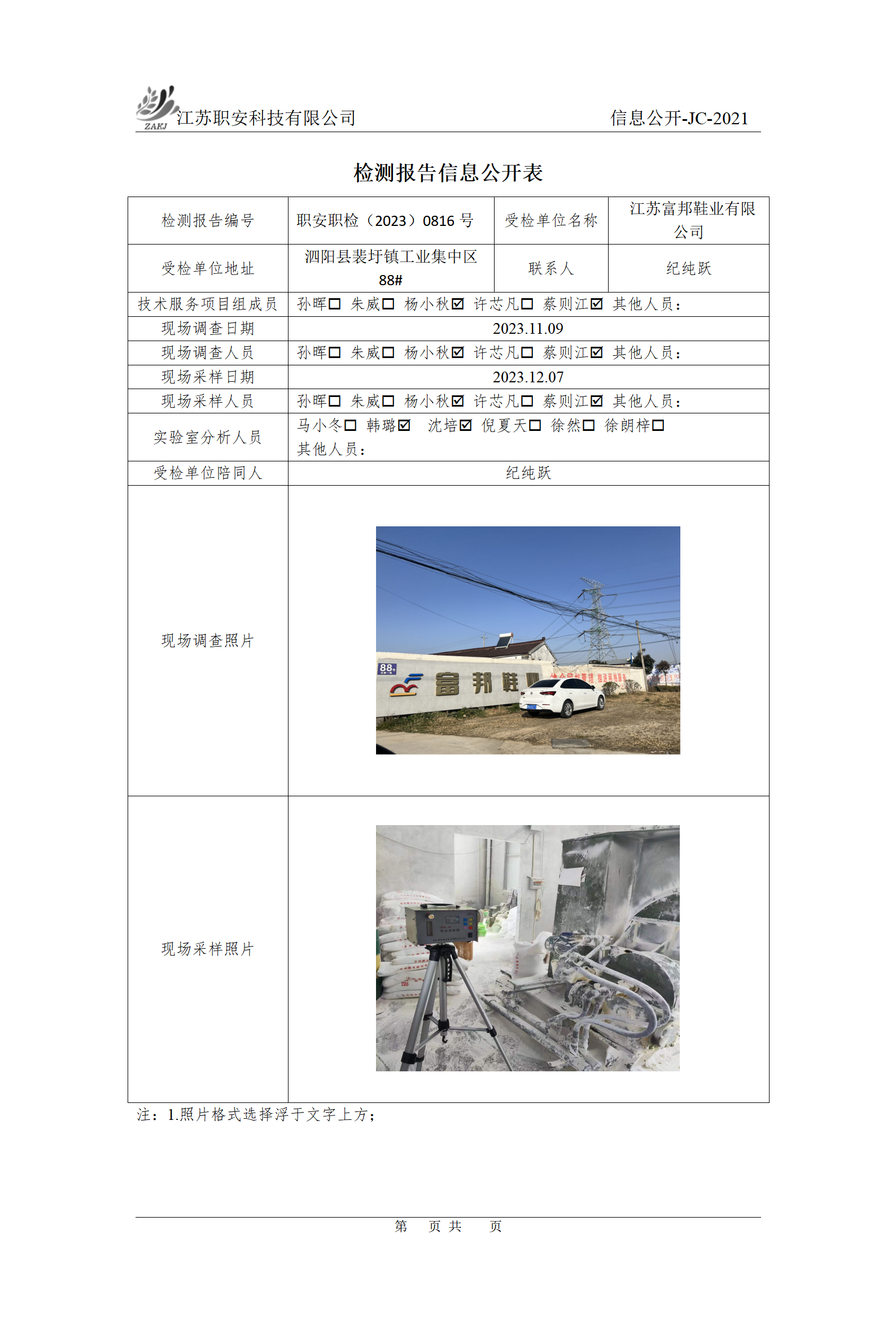 檢測報告公示