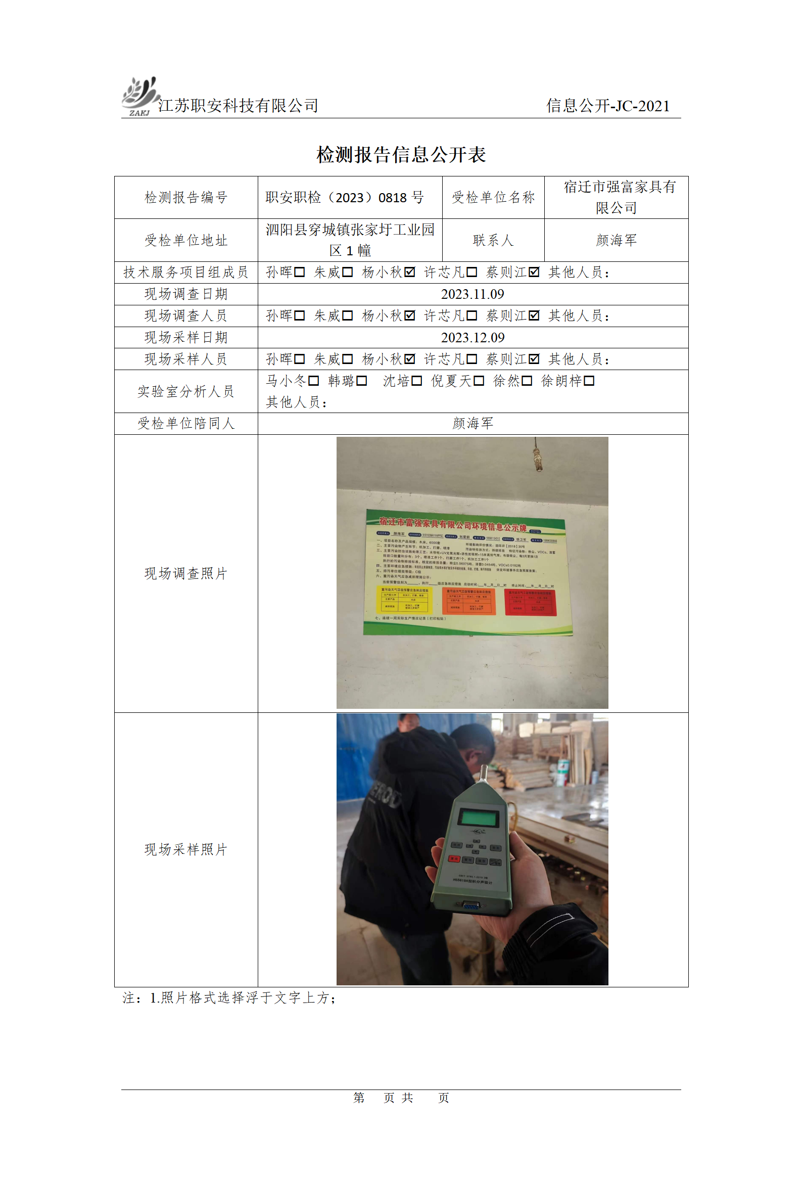 檢測報告公示