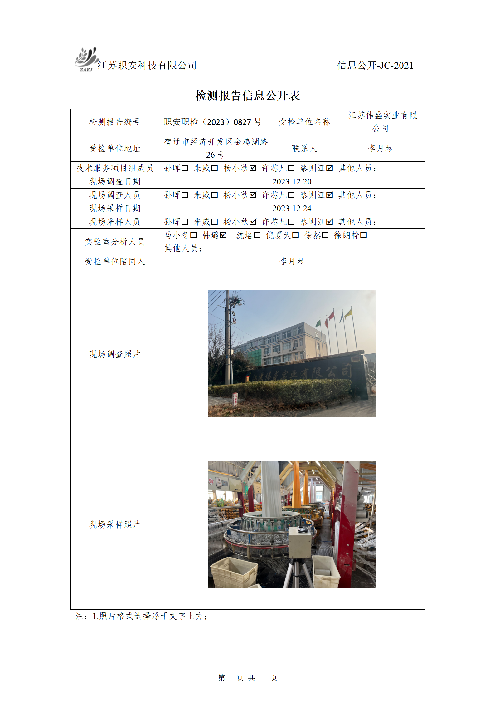 檢測報告公示