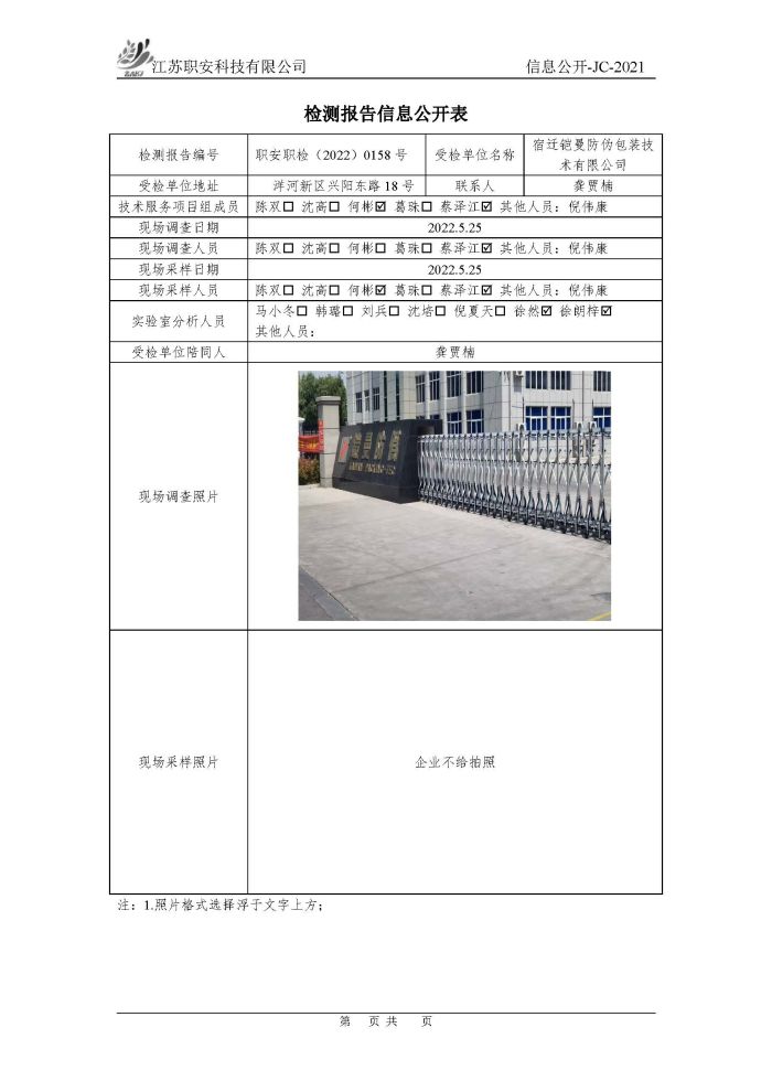 檢測報告公示