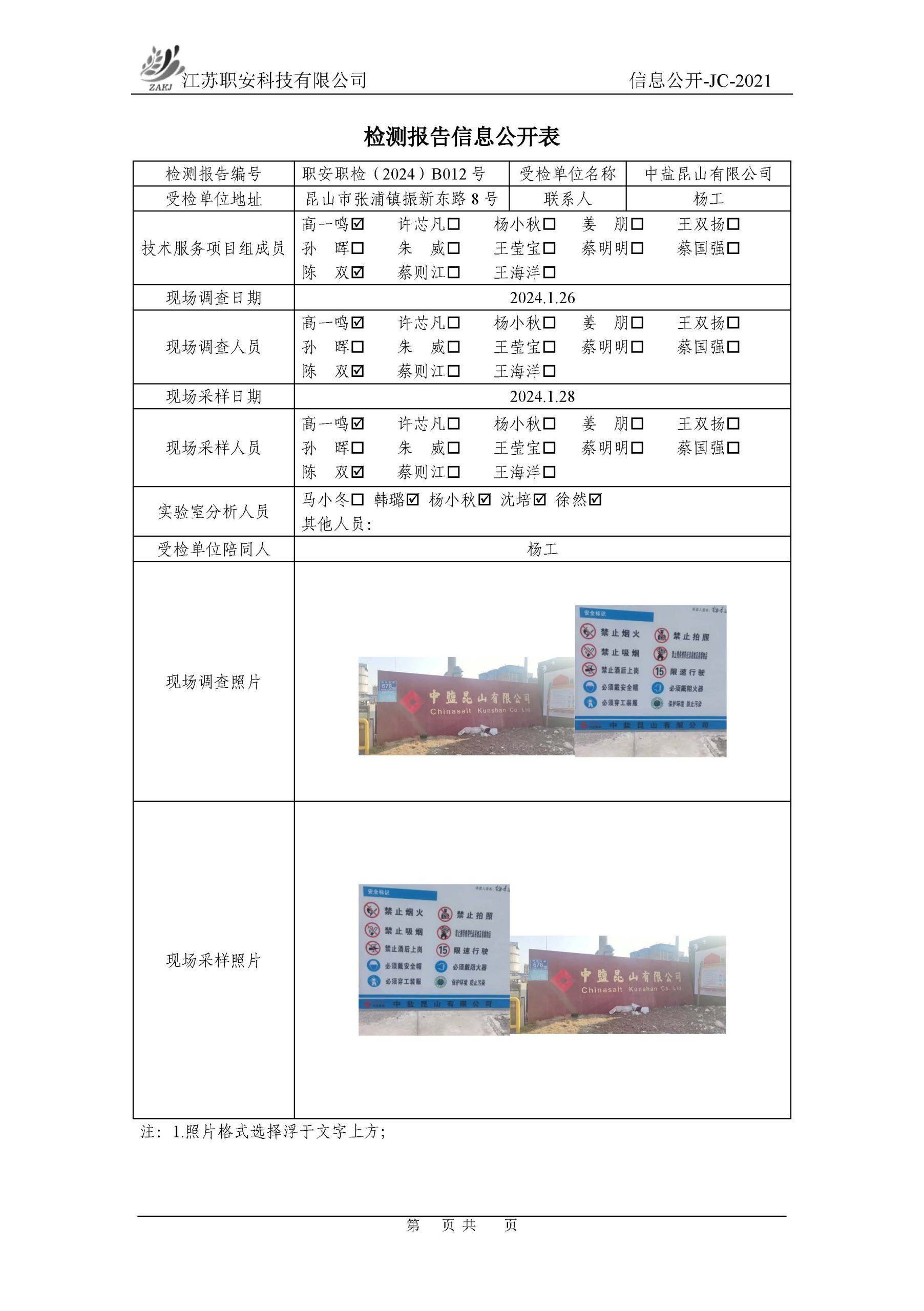 檢測報告公示