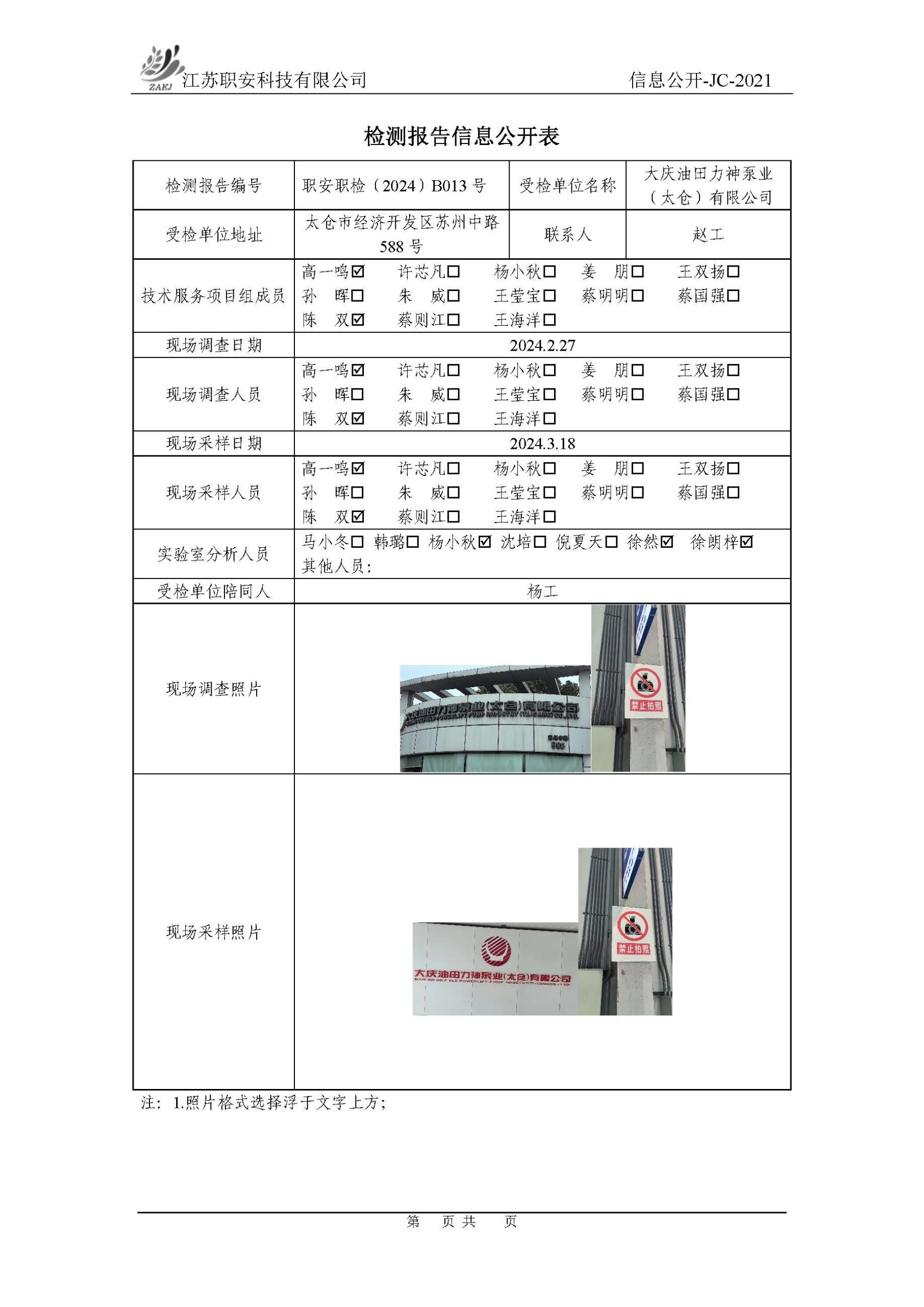 檢測報告公示