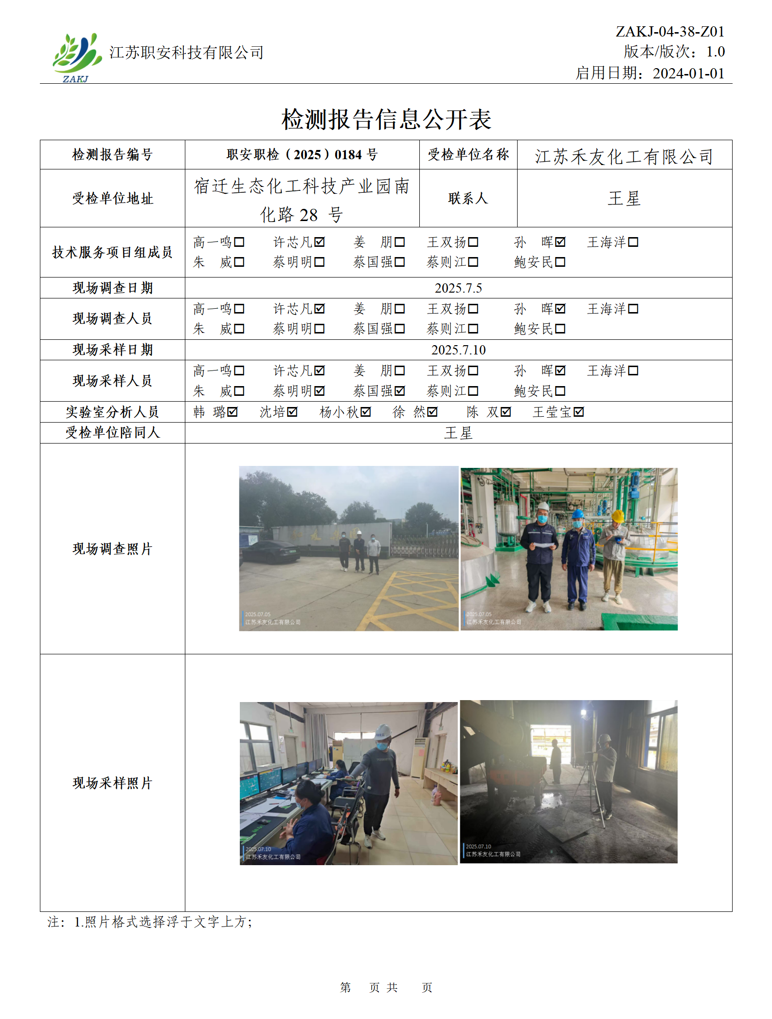 檢測報告公示