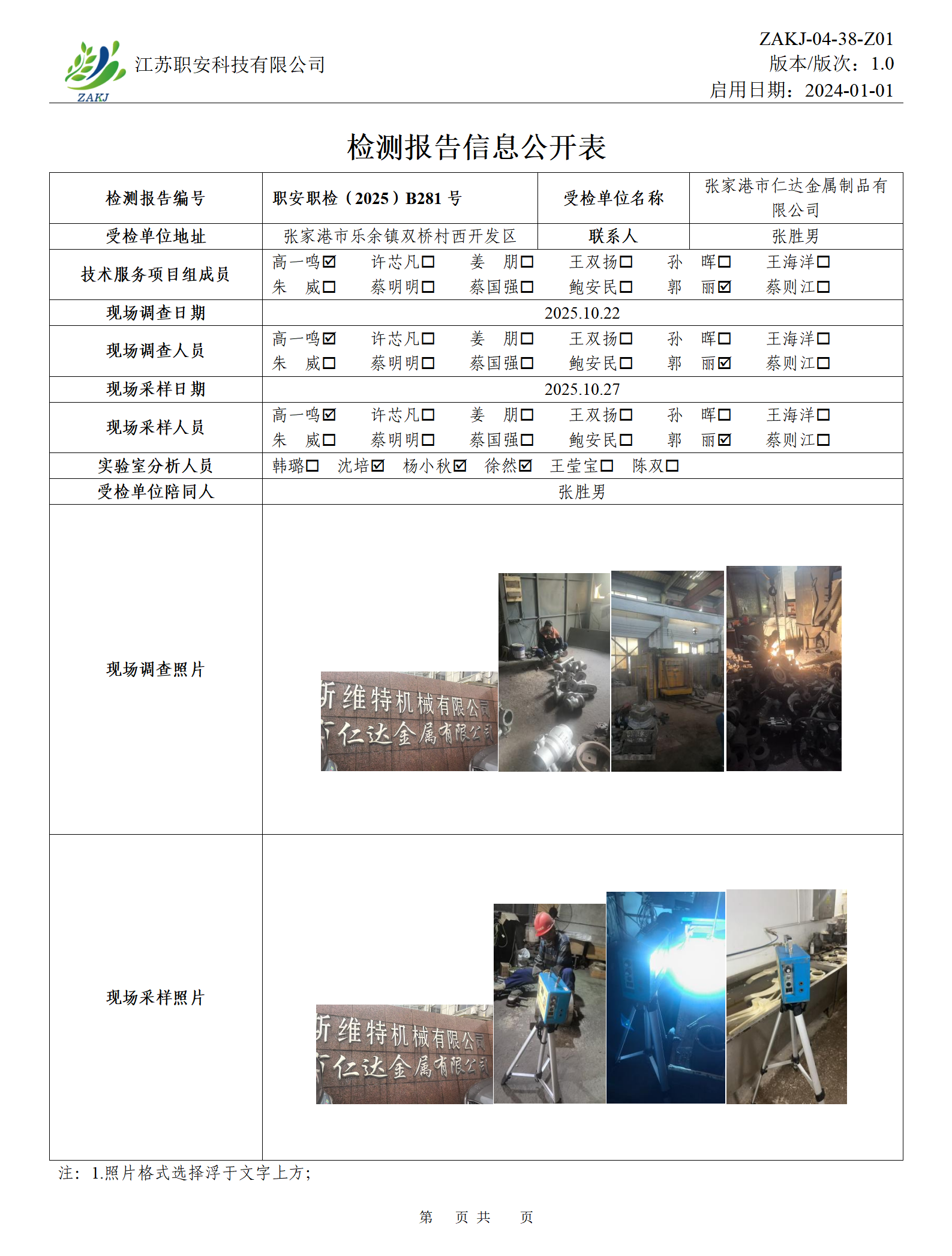 檢測報告公示