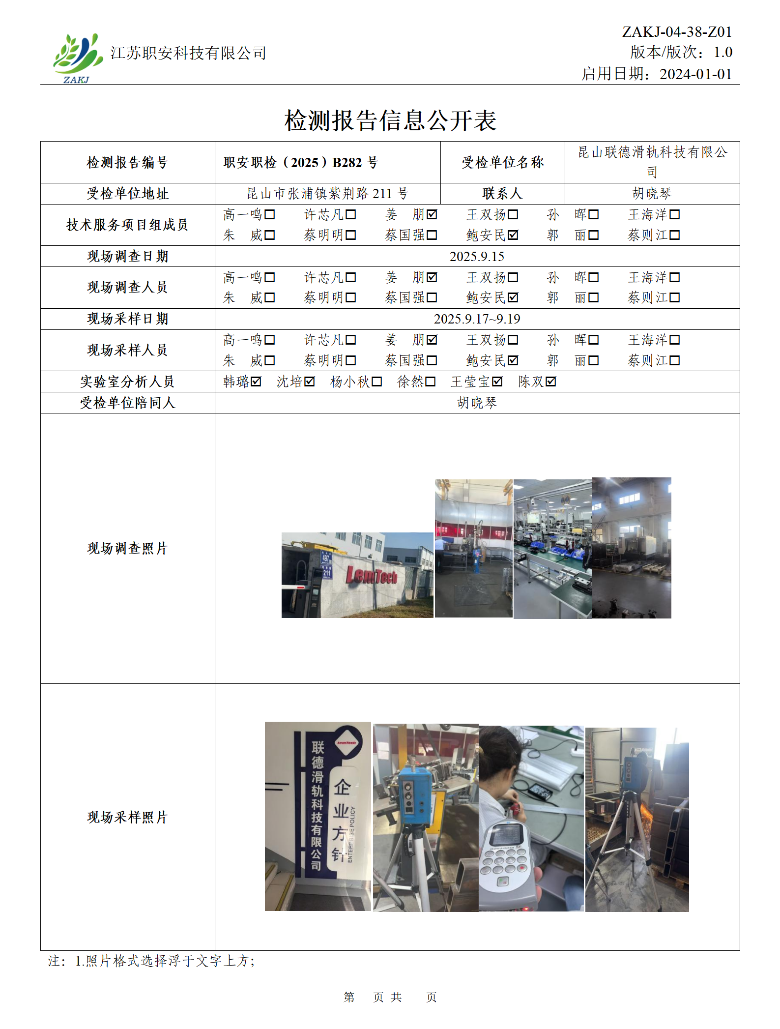 檢測報告公示