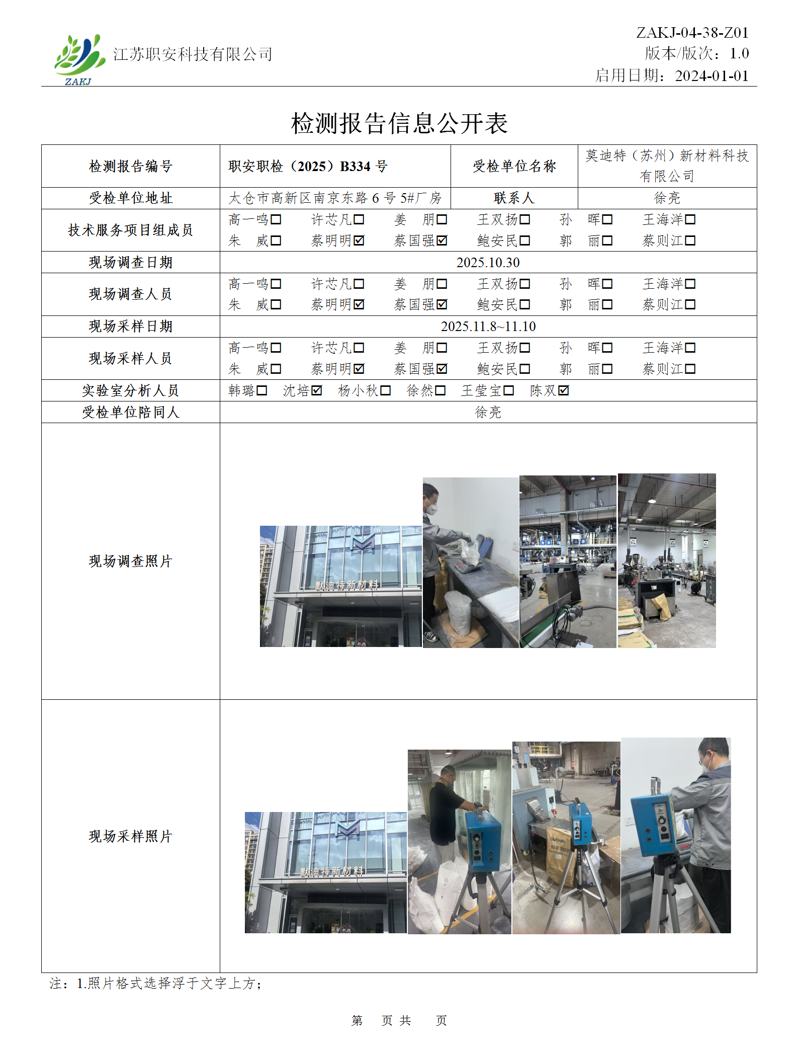 檢測報告公示