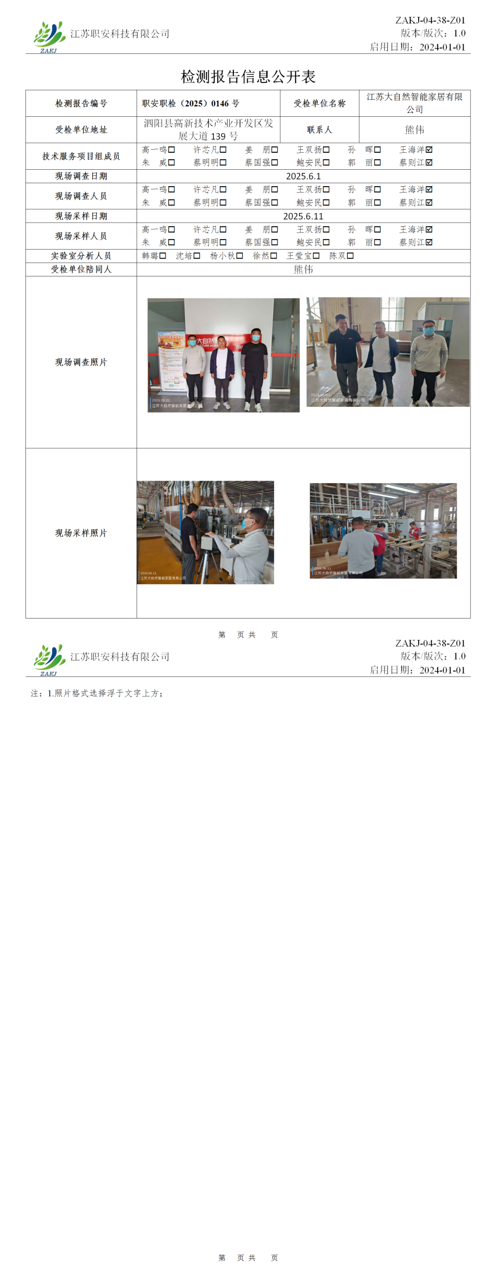 檢測報告公示