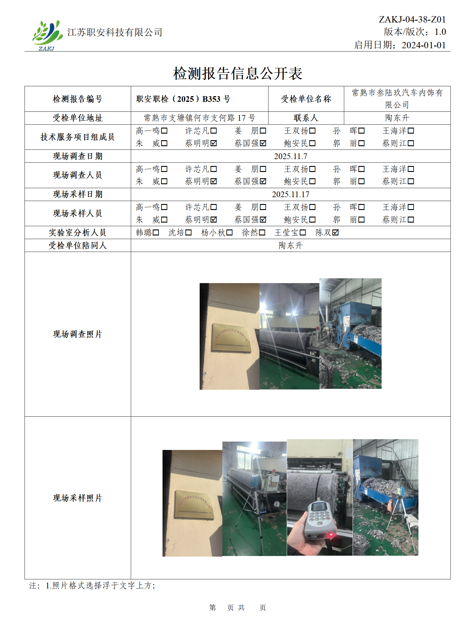 檢測報告公示