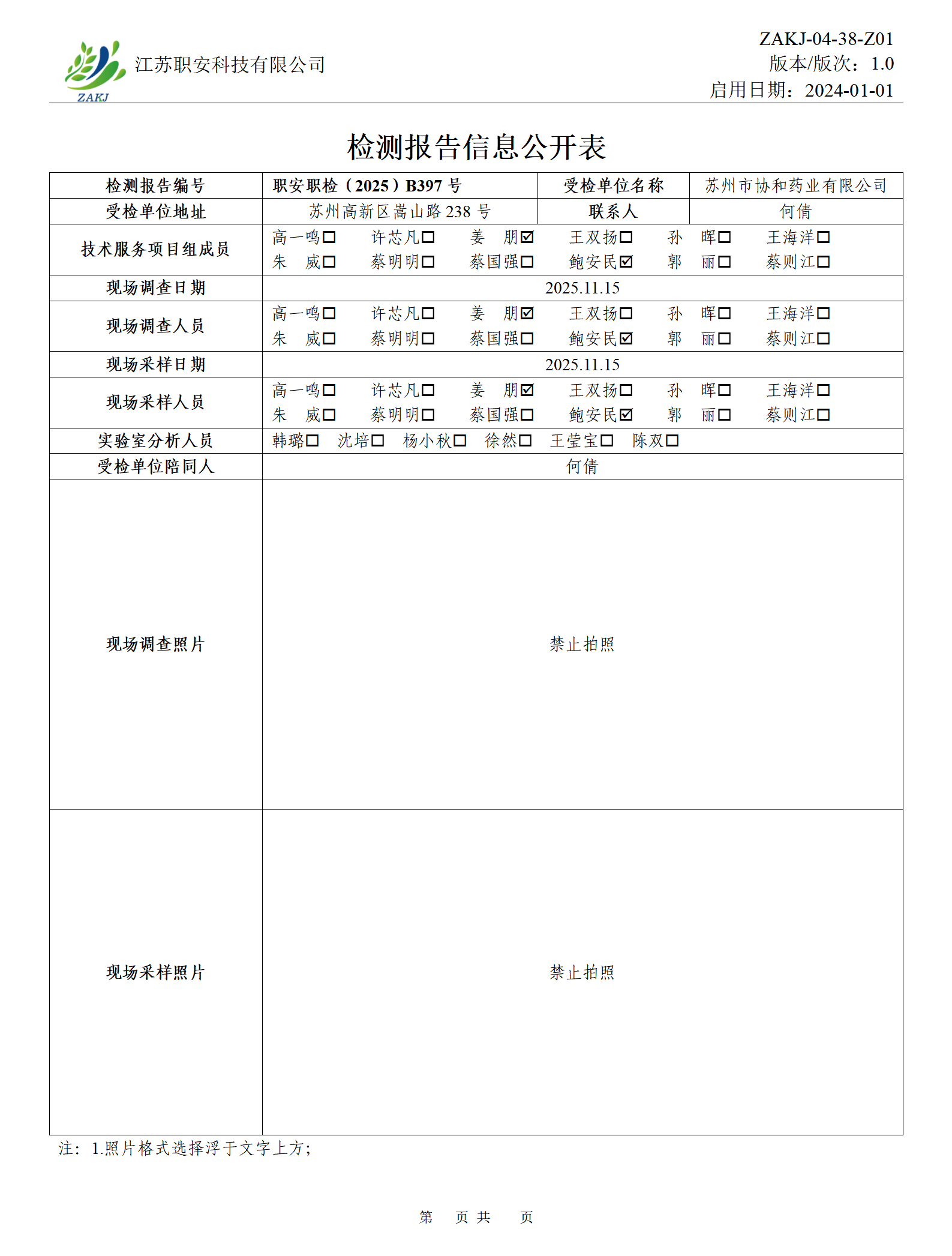 檢測報告公示