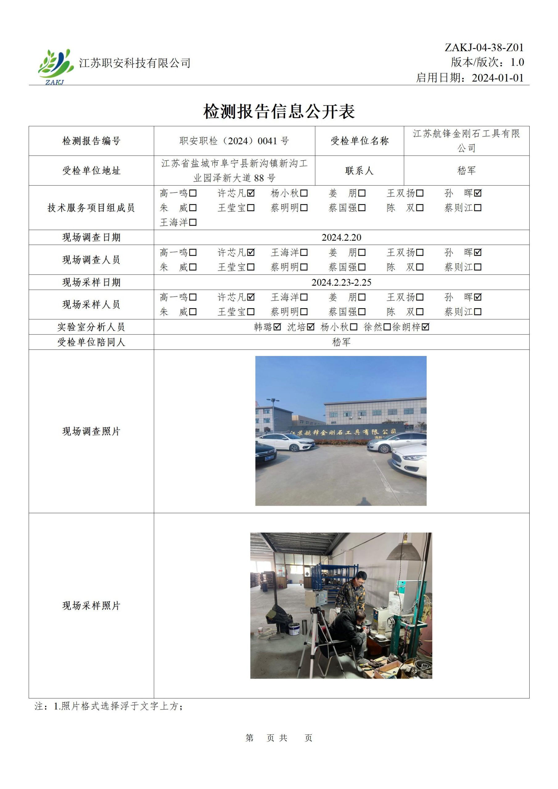 檢測報告公示